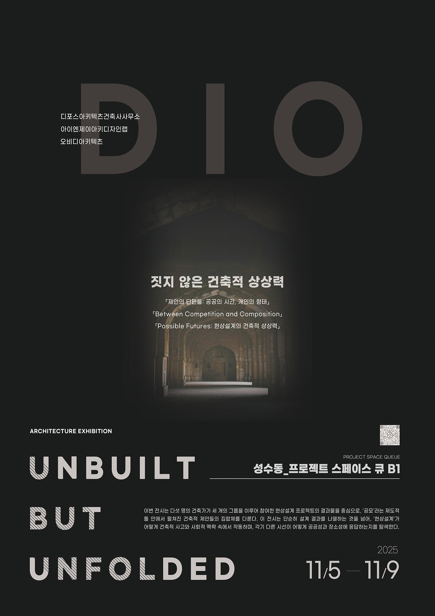 µðÆ÷½º¾ÆÅ°ÅØÃ÷ °ÇÃà»ç»ç¹«¼Ò(ÀåÀ±¼·, ¿©È£¿µ), ¾ÆÀÌ¿£Á¦ÀÌ ¾ÆÅ°µðÀÚÀη¦(±èÀçÈÆ, ÆäŰ À̳׽º(Fekih Ines)), ¿Àºñµð¾ÆÅ°ÅØÃ÷(±èÀçÇö)°¡ ¿À´Â 11¿ù 5ÀÏ(¼ö)ºÎÅÍ 9ÀÏ(ÀÏ)±îÁö D.I.O ´ÜüÀü <Unbuilt but Unfolded, ÁþÁö ¾ÊÀº °ÇÃàÀû »ó»ó·Â>À» °³ÃÖÇÑ´Ù.