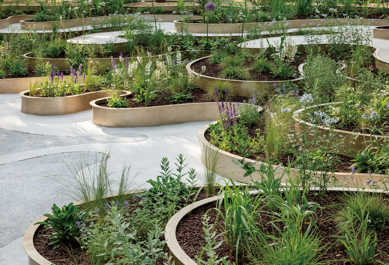 ÀÌ⿱, ÀÌÁø: ´Ü¼øÈ÷ ´«À¸·Î º¸±â¸¸ ÇÏ´Â Á¤¿øÀ» ³Ñ¾î¼, ÀÚ¿¬°ú Àΰ£À» ¿¬°á½ÃŰ°í »óÈ£ÀÛ¿ëÇÏ°Ô ¸¸µé°í ½Í¾ú´Ù. »ç¶÷µéÀÌ ¿ÜºÎ¿¡¼ Á¤¿øÀ» °ü¸ÁÇϱ⺸´Ù, Á¤¿ø ³» µ¿¼±À» °È°í Á߽ɿ¡ ¹èÄ¡µÈ ÀÇÀÚ¿¡ ¾É¾Æ¼ ±íÀº ÀÚ¿¬ÀÇ ³»ºÎ·Î µé¾î¿Â µíÇÑ °æÇèÀ» Çϱ⸦ ¹Ù¶ú´Ù. ȸº¹ÀÇ ½Ã°£¿¡¼ »ç¶÷µéÀº °ã°ãÀÇ °î¼± »çÀ̸¦ °Å´Ò¸ç ÀǵµÀûÀ¸·Î ³·°Ô ¹èÄ¡µÈ ½Ä¹°µé°ú ½ºÄ¡°Ô µÈ´Ù. À̸¦ À§ÇØ ÀϺη¯ Åë·Î¸¦ Á¼°Ô ¸¸µé¾ú´Ù. °¡À»Ã¶ »êÃ¥ÇÏ´Â »ç¶÷µéÀÌ ¾¾¼ÛÀ̰¡ ´Þ¸° ½Ä¹°°ú ½ºÄ¡¸é¼ ¿ï¼ÒÀç ¿Ê°¨¿¡ ¾¾¾ÑÀÌ ¹¯¾î°£´Ù¸é, Àΰ£ÀÌ ½Ä¹° Á¾ÀÚ¸¦ ¿Å±â¸ç »ýÅÂÀÇ ÀϺημ ¿ªÇÒÀ» ÇÏ´Â Àϵµ ÀϾÁö ¾ÊÀ»±î »ó»óÇß´Ù. ½ÄÀç ¸é¿¡¼´Â Àΰ£ÀÇ ³»¸é¿¡ ÀÖ´Â ÀÚ¿¬¿¡ ´ëÇÑ ¿øÃÊÀûÀÎ ±â¾ïÀ» ²ø¾î³»´Â ´Ù³â»ý ÃÊȸ¦ ¹Ðµµ ³ô°Ô »ç¿ëÇß´Ù. Á¤¹ÐÇÏ°Ô °ü¸®µÈ Á¤¿øÀÌÁö¸¸ ¾ß»ýÀûÀÎ ´À³¦À» ´ã¾Æ³»±â À§ÇØ °¡´ÉÇÑ ÇÑ °³È±â°¡ ±æ°í °¡À» ´Üdz°ú °Ü¿ï ¾¾¼ÛÀÌ ±¸Á¶°¡ ¾Æ¸§´Ù¿î ¼÷±ÙÃÊ »ç¿ë¿¡ °øÀ» µé¿´´Ù. ÀÌ·Î ÀÎÇØ °èÀý°¨À» dzºÎÇÏ°Ô ´À³¥ ¼ö ÀÖ°í, ÇØ°¡ °ÅµìµÉ¼ö·Ï ´õ¿í dz¼ºÇØÁö´Â ½Ä¹°µéÀ» º¼ ¼ö ÀÖ´Ù. ¿µ±¹¿¡¼ »ýȰÇÏ¸é¼ ¼öÁØ ³ôÀº °ø°øÀå¼Ò¿Í ±× °ø°£À» »ç¶ûÇÏ´Â »ç¶÷µé³¢¸® ÃëÇâÀ̳ª ¾ÖÂøÀ» °øÀ¯Çϸç Á¤¼ÀûÀÎ ±³·ù¸¦ ÇÏ´Â ¸ð½ÀÀ» ÀÚÁÖ Á¢ÇÒ ¼ö ÀÖ¾ú´Ù. ¾ÆÁ÷ Çѱ¹Àº ±×·± °ø°ø °ø°£ÀÌ ¸¹Áö ¾Ê¾Æ ¾Æ½±´Ù°í »ý°¢Çß´Ù. ±×·¡¼ ȸº¹ÀÇ ½Ã°£¿¡¼´Â »ç¶÷µé °£ÀÇ »óÈ£ÀÛ¿ëÀÌ ´õ ¸¹ÀÌ ¹ß»ýÇÏ°Ô ¸¸µé·Á°í Çß´Ù. Á¤¿ø °¡¿îµ¥ ³õÀÎ Å×À̺í°ú ÀÇÀÚÀÇ À§Ä¡ ¿ª½Ã °Å¸®°¨À̳ª ¹æÇ⼺À» ÀǵµÀûÀ¸·Î ¾Ö¸ÅÇÏ°Ô ¸¸µé¾î¼ »ç¶÷µé »çÀÌ¿¡ ¿ì¿¬ÇÑ ±³·ù°¡ ¹ß»ýÇϵµ·Ï Çß´Ù.