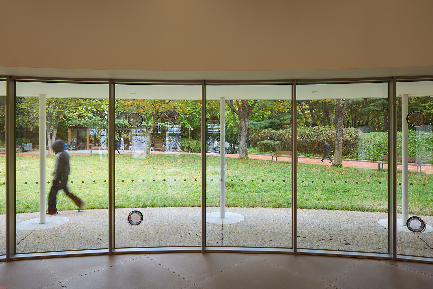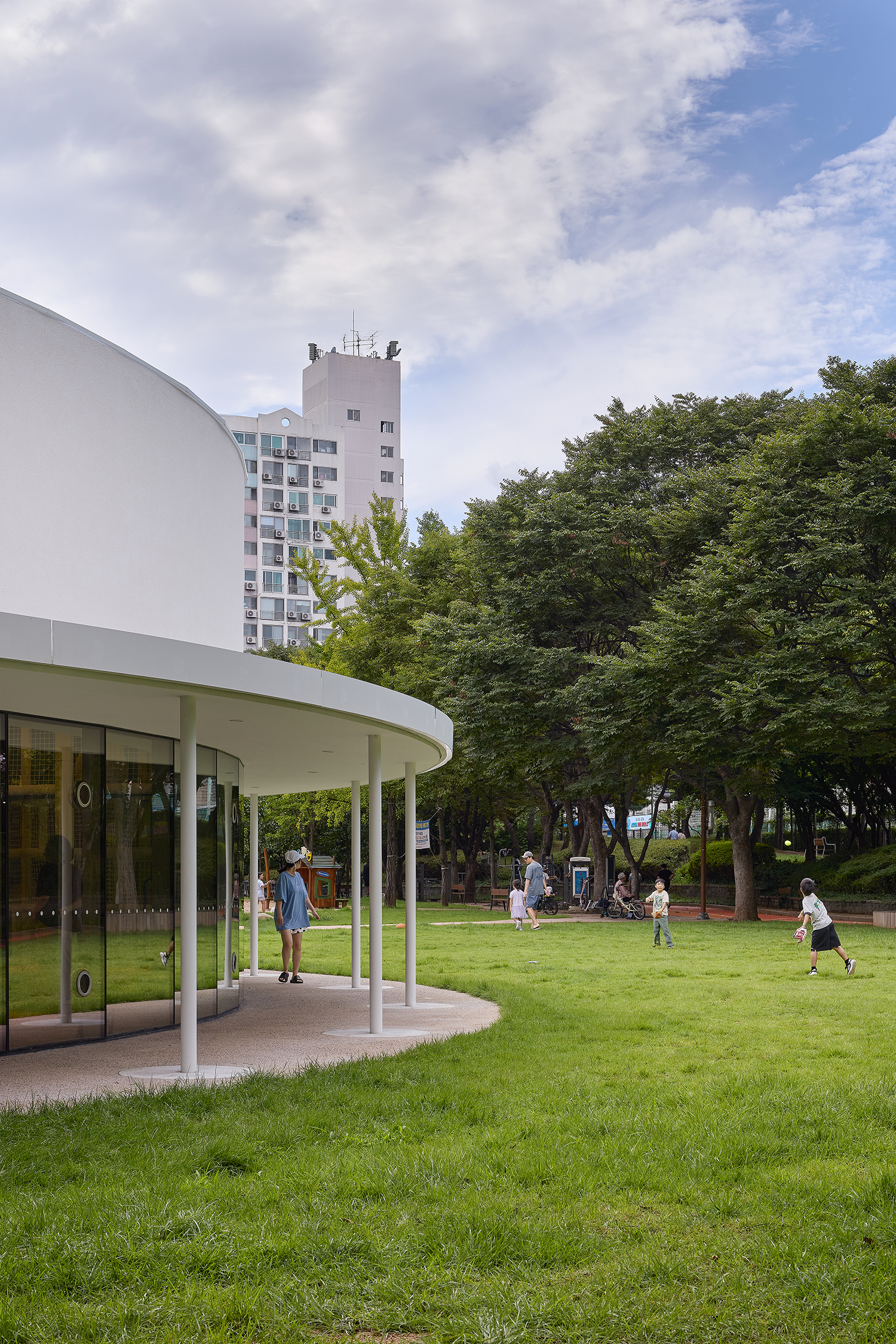 È«ÁöÇÐ: °ø¿ø °èȹÀÌ Ãë¼ÒµÇ¸é¼ ±âÁ¸ ¸¶½ºÅÍÇ÷£¿¡¼ °èȹÇß´ø ³ìÁö³ª ½Ã¼³¹°Àº »ç¶óÁ³Áö¸¸, ¿ì¸®°¡ ¼³°èÇÑ °Ç¹°ÀÌ °ø¿øÀÇ ±âÁ¸ Á¶°æ°ú Å©°Ô Ãæµ¹ÇÏ´Â ºÎºÐÀº ¾ø´Ù°í ´À²¸Á³´Ù. ±×·¡¼ Çü»óÀº ±×´ë·Î À¯ÁöÇ쵂 ÇöÀç °ø¿ø µ¿¼±¿¡ ¸ÂÃç ¿øÇü ¹èÄ¡¸¦ À̸®Àú¸® µ¹·Á°¡¸ç, ½Ç³»¿¡¼ º¸ÀÌ´Â Àå¸é°ú Áß¾Ó Åë·Î¸¦ Ȱ¿ëÇØ ¾î¶»°Ô °ø¿ø°ú ¿¬°áÁ¡À» ¸¸µéÁö °í¹ÎÇß´Ù.