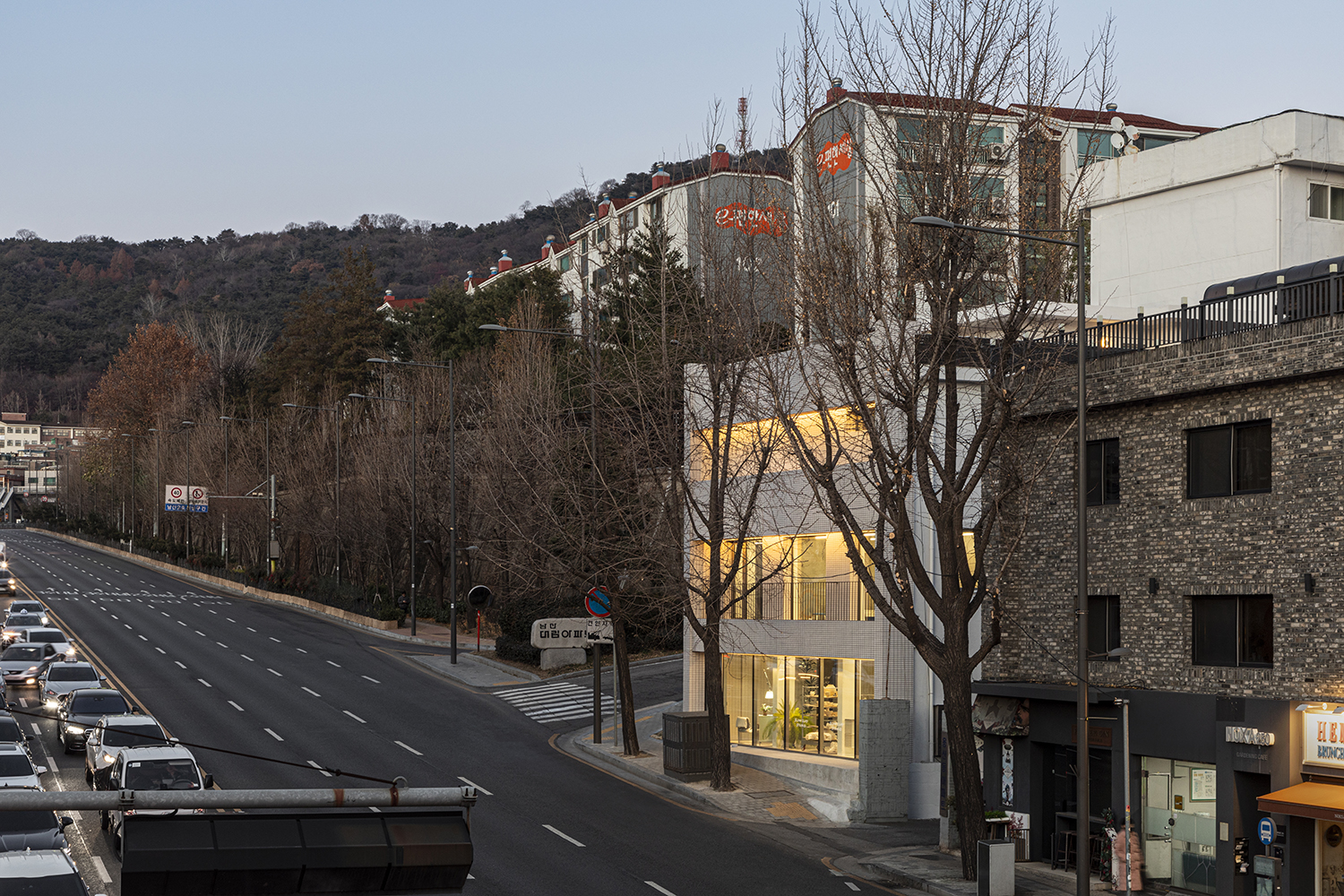 Á¶À±Èñ: ÀÌÁß ¿ÜÇÇ Àü·«ÀÌ ¿ì¸®¿¡°Ô ±²ÀåÈ÷ Áß¿äÇß´Ù. Æ®·¡¹öƾ ÆÄ»çµå µÚ·Î °Ç¹°ÀÇ ½ÇÁ¦ ÀÔ¸éÀÌ Àִµ¥, ÁøÂ¥ ÀÔ¸é°ú °¡Â¥ ÀÔ¸é, Áï ±â´ÉÀû ¿ä±¸¸¦ ÇØ°áÇÏ´Â ÀÔ¸é°ú Á¤Ã¼¼ºÀ» µå·¯³»´Â ÀÔ¸éÀ» ¼¼¿ì°í ±× »çÀÌ¿¡ ¿ÏÃæ °ø°£À» µÎ´Â °ÍÀÌ µµ½ÃÀûÀ¸·Î »õ·Î¿î ÇØ¹ýÀÌ µÉ ¼ö ÀÖ´Ù°í º¸¾Ò´Ù. ÀüÀÛÀÎ ¿øºÒ±³ ¿ª»ï±³´ç(2022, ¡¸SPACE¡¹ 677È£ Âü°í)¿¡¼µµ µµ½ÉÇü »çÂûÀ̶ó´Â Ư¼ºÀ» °í·ÁÇØ µµ½Ã dz°æÀ» ÇÊÅ͸µÇÒ ¼ö ÀÖ´Â ¹ÝÅõ¸íÇÑ ÀçÁúÀÇ ¸·À» °Ç¹° Àü¸é¿¡ ¹èÄ¡Çß´Ù. ±× µÚ·Î´Â Å׶󽺸¦ µÎ¾î °ø°£ÀÇ Ç³¿ä·Î¿òÀ» ´À³¢µµ·Ï Çß°í. ´ÜÀÏÇÑ ÀÔ¸éÀ¸·Î´Â ÇØ°áÇÒ ¼ö ¾ø´Â ¹®Á¦¸¦ ºñ½ÁÇÑ Àü·«À¸·Î Ç®¾î³ª°£ °ÍÀÌ´Ù.