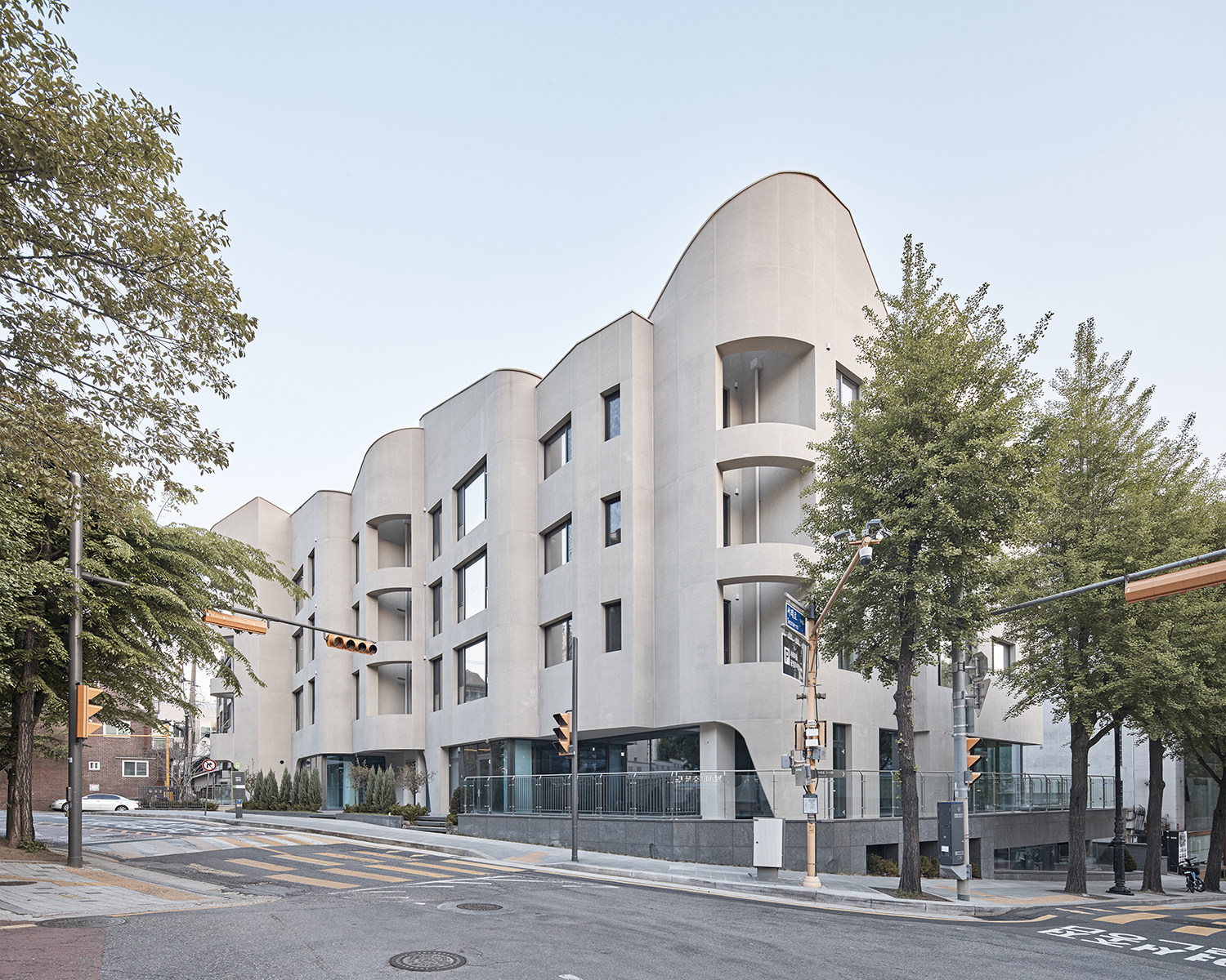 °Ç¹°Àº ÁöÇü¿¡ ±â´ëµí ÀÚ¿¬½º·´°Ô ³õÀÎ 4Ãþ ±Ô¸ð·Î, ÁÖº¯ ȯ°æÀ» ¾ÐµµÇϱ⺸´Ù Á¶È·Ó°Ô ¾î¿ì·¯Áø´Ù. ¸Å½º´Â °¢°¢ÀÇ ÁÖ°Å À¯´Ö ³»ºÎ¿¡¼ Ãâ¹ßÇÑ ³í¸®¿¡ µû¶ó Çü¼ºµÆ´Ù. ºÎµå·¯¿î °î¼± ¹ßÄÚ´Ï¿Í µÕ±Ù ¸ð¼¸®´Â ¾ð´ö Á¤»óÀÇ µµ·Î È帧°ú ¸®µë¿¡ ¹ÝÀÀÇÏ¸ç µµ½ÃÀÇ °á¿¡ ¸ÂÃá °ÇÃàÀû Á¦½ºÃ³¸¦ ¸¸µé¾î³½´Ù. 1ÃþÀº ¡®µµ½ÃÀû °æ°è(civic threshold)¡¯·Î ±¸»óµÆ´Ù. °æ»çÁö¿¡ ³õÀÎ ´ëÁö Ư¼º»ó ÁöÇÏ 1Ãþ ¶ÇÇÑ °Å¸®¿¡¼ ÀÚ¿¬½º·´°Ô Á¢±ÙµÇ¸ç, 1Ãþ°ú ÇÔ²² ÀÌ °æ°è¸¦ È®ÀåÇÑ´Ù. Ä«Æä, ¸®Å×ÀÏ, ȤÀº ¼Ò±Ô¸ð Ŭ¸®´Ð µî Áö¿ª Ä¿¹Â´ÏƼ¿¡°Ô ¿¸° ÇÁ·Î±×·¥ÀÌ µé¾î¼¸ç °Å¸®¿Í °ÅÁÖ »çÀÌ¿¡ ÀÚ¿¬½º·¯¿î ´ëȸ¦ ¸¸µé¾î³½´Ù. ´Ü¼øÇÑ »ó¾÷ °ø°£ÀÌ ¾Æ´Ñ, ÀÌ¿ô°úÀÇ Á¢Á¡À» ³ÐÈ÷´Â µµ½ÃÀû ÀåÄ¡ÀÎ ¼ÀÀÌ´Ù. »óºÎ¿¡´Â ÃÑ 12¼¼´ë°¡ ¹èÄ¡µÇ¸ç Å« âÀ» ÅëÇØ °¡·Î¼ö±æÀÇ ³ìÀ½À» °Å½Ç ¾ÈÀ¸·Î ²ø¾îµéÀδÙ. À̰÷ÀÇ ½Ã¼±Àº µµ½Ã¸¦ ³»·Á´Ùº¸´Â °ÍÀÌ ¾Æ´Ï¶ó, µµ½Ã¿Í Çϳª°¡ µÇ¾î ³»ºÎ¸¦ ÀÀ½ÃÇÑ´Ù. µµ½Ã¶ó´Â ¡®¹æ¡¯ ¾È¿¡¼ »îÀº ´ÙÃþÀû ºÐÀ§±â¸¦ Ÿ°í À¯±âÀûÀ¸·Î ÆîÃÄÁø´Ù.