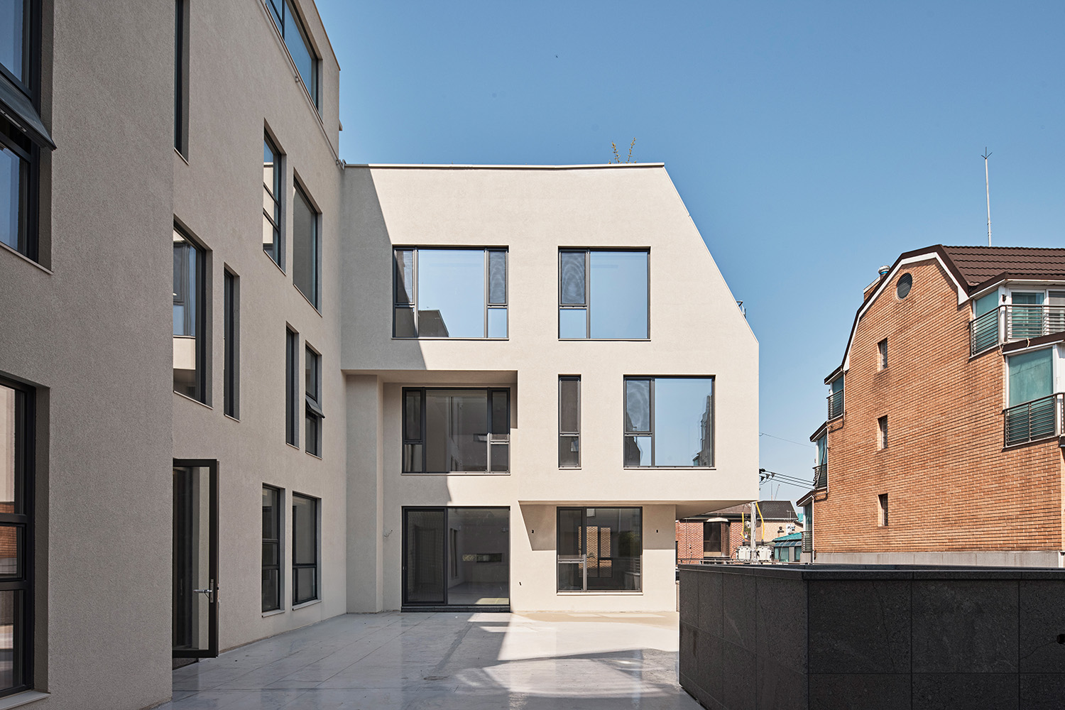 ÀÎÅ׸®¾î´Â °ÇÃà°úÀÇ ¿¬¼Ó¼º, ³ª¾Æ°¡ µµ½Ã¿ÍÀÇ È帧 ¼Ó¿¡¼ ±¸»óµÆ´Ù. ´Ü¼øÇÑ Àå½ÄÀ» ³Ñ¾î °ÇÃàÀÇ ¾ð¾î°¡ ½Ç³»·Î À̾îÁø´Ù. °Å¸®¿¡¼ Çö°üÀ» Áö³ª ³»ºÎ·Î µé¾î¼´Â µ¿¼±Àº ²÷±è ¾øÀÌ À̾îÁö¸ç, ºû°ú Àç·á, ¸®µëÀÌ À¯±âÀûÀ¸·Î ¿¬°áµÈ´Ù. ¼®Àç, ŸÀÏ, µû¶æÇÑ Áú°¨ÀÇ ¸ñÀç ¹Ù´Ú, ºÎµå·´°Ô ¸¶°¨µÈ º®¸éÀº °¢ ÁÖ°Å °ø°£°ú º¹µµ, °è´Ü, °øÀ¯ °ø°£À» ÇϳªÀÇ °¨°¢Àû È帧À¸·Î ¹´Â´Ù. ÀÚ¿¬ÀÇ »öÁ¶´Â ¿ÜºÎ dz°æÀ» ½Ç³»·Î ²ø¾îµéÀ̸ç, ...