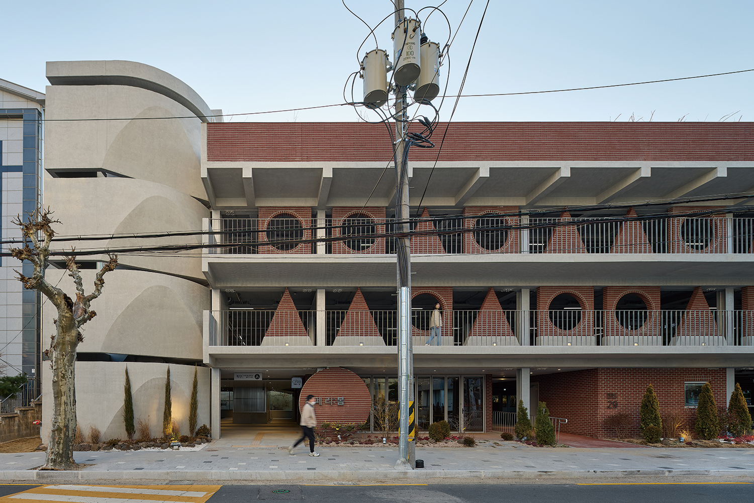 ±èºó(±è): °ø¸ð¸¦ ÁغñÇÒ ¶§ºÎÅÍ °Å´ëÇÑ ÁÖÂ÷ÀåÀÌ µµ½Ã dz°æÀ» ÇØÄ¡Áö ¾Ê´Â °ÍÀ» Áß¿äÇÏ°Ô »ý°¢Çß´Ù. ±×·¡¼ ¹ýÀûÀ¸·Î ¹Ù´Ú¸é¿¡¼ 60cm ÀÌ»ó ³ôÀÌ·Î ¼³Ä¡ÇØ¾ß ÇÏ´Â Ãæµ¹¹æÁöº®À» ÄÜÅ©¸®Æ®·Î ¸¸µé°í, ±× À§¿¡ º®µ¹À» ½×¾Æ Â÷·®ÀÌ Á÷Á¢ º¸ÀÌÁö ¾Ê°Ô °¡¸®´Â ¹æ¹ýÀ» °í¾ÈÇß´Ù. ¿¾ ¹è¿µÃʵîÇб³¸¦ ºñ·ÔÇØ º®µ¹ °Ç¹°µéÀÌ ÁÖº¯¿¡ ¸¹¾Æ º®µ¹ÀÌ ¾î¿ï¸®´Â Àç·á¶ó »ý°¢Çß´Ù. Àç·á ³¶ºñµµ ÁÙÀϰ⠺®µ¹À» ³Ö°í »©¸é¼ ±¸ÃàÇÏ±â ÆíÇÑ ÇüÅ·Π¸¸µé´Ù º¸´Ï ´Ü¼øÇÑ ±âÇÏÇÐÀû ÇüÅ·ΠÁ¤¸®µÈ °ÍÀÌ´Ù.